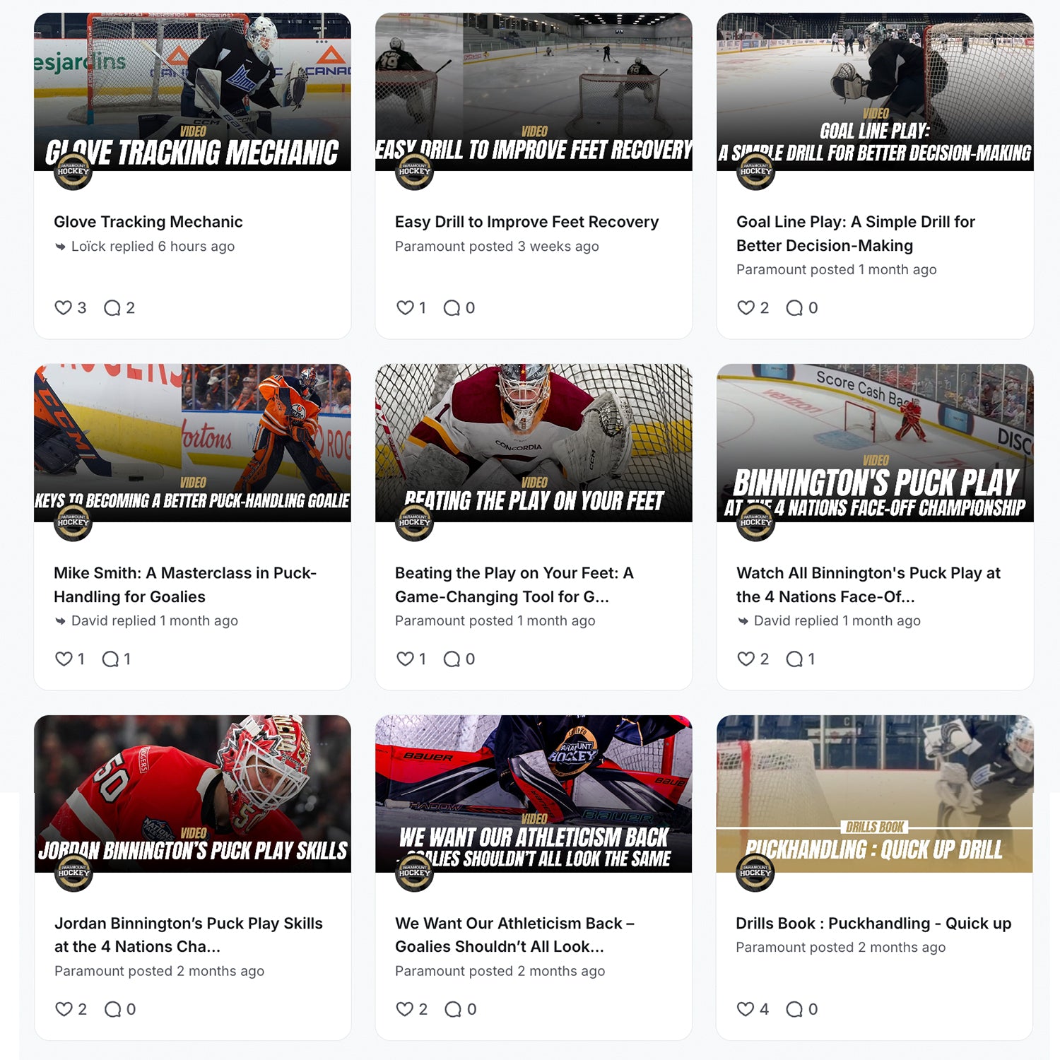 A leaderboard will be in place to reward goalies who are the most engaged and dedicated to learning. Comments, activities, likes, and more will earn points. We'll hold contests for different point levels to keep things exciting and rewarding.